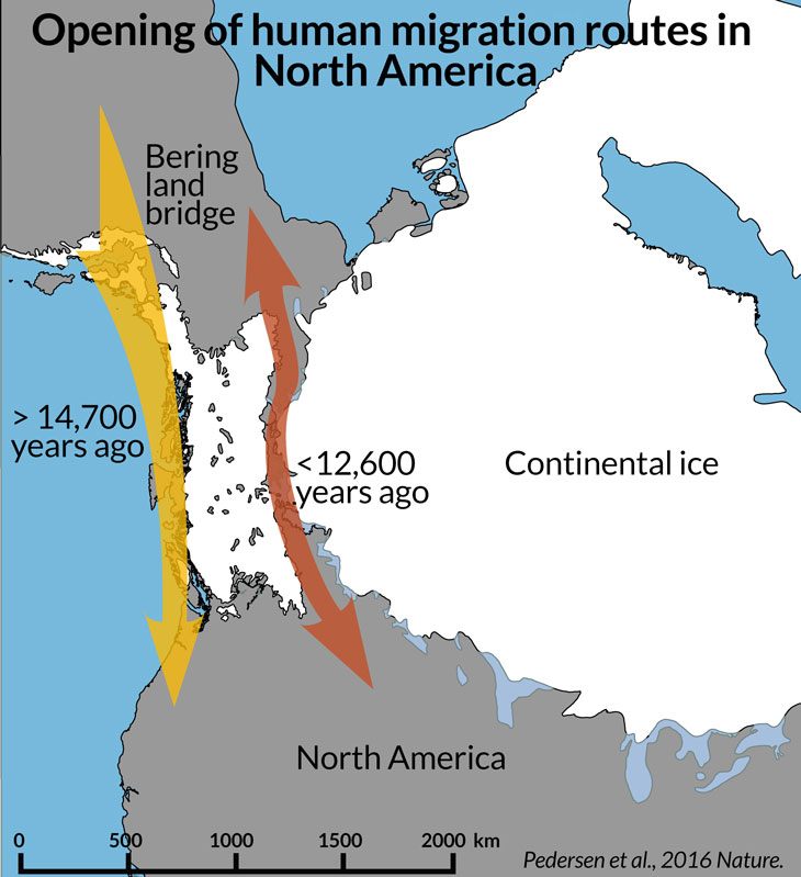 “If you look at a textbook about the earliest people in the Americas, you’ll see an arrow going from Siberia, into Alaska and through this interior ice-free corridor,” says study coauthor Eske Willerslev, an evolutionary geneticist at the University of Copenhagen. “This whole schoolbook example of how the Americas were populated seems to fall apart.”