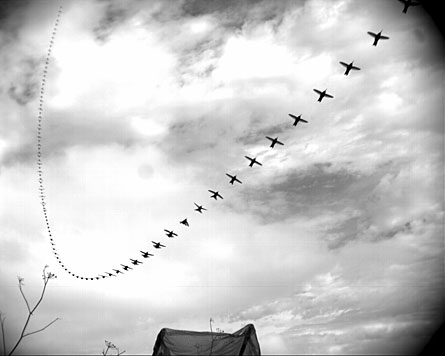 Clark took advantage of the males’ predictable dive orientation, setting out a caged female, or even a stuffed female on a stick, to inspire birds to dive right in front of his video cameras. Males flew up and plunged over the female typically 10 or 15 times in a row, but one enthusiastic stunt flier completed 75 consecutive dives with a break of only a few minutes.