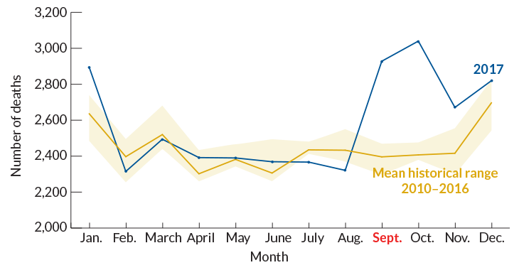 Analysis of vital statistics records shows spike in deaths in September and October of 2017