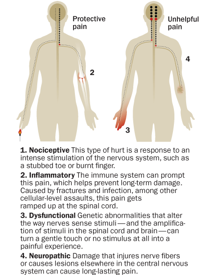 But when physical injury, metabolic disorders such as diabetes, autoimmune diseases or viral infections assault nerve cells, pain is no longer protective. Nerves can become trigger-happy, set off by something as mild as the touch of bedsheets. An estimated 20 million people in the United States experience this kind of pathological pain in their extremities.