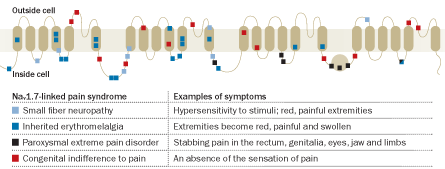 Yet SCN9A offered a textbook example: A single mutation in a single gene could cause a person to lose the ability to sense pain, while another mutation in that same gene could amp up that ability, making people feel pain even when they should not.