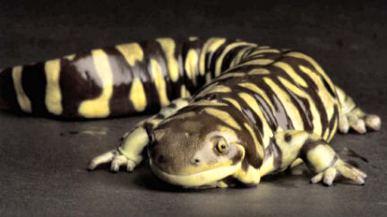 The barred tiger salamanders (Ambystoma tigrinum mavortium) have more-elongated yellow markings. Since bait sellers brought them in, they have hybridized with natives in up to 20 percent of the California species’ current range.