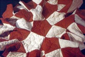 To get a feel for what the hyperbolic plane is like, you could try to sew together pieces of cloth in the shape of pentagons. Mathematician and sculptor Helaman Ferguson has done that to fashion a persistently wrinkly hyperbolic quilt by sewing the fabric so that four pentagons meet at each corner. He describes his creation as an unruly quilt that refuses to lie flat.