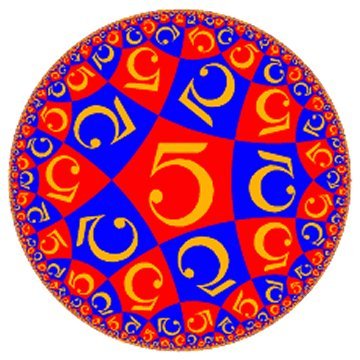“We have a checkerboard of red and blue right-angled pentagons,” Ferguson explains. “This is possible because the hyperbolic plane has uncountably many more triangles and consequently more pentagons than the Euclidean plane has.”