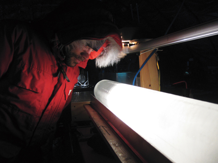 People Earth The ice keeper The Science Life By Alexandra Witze May 2, 2013 at 4:05 pm - More than 2 years ago Share this:Share Share via email (Opens in new window) Email Click to share on Facebook (Opens in new window) Facebook Click to share on Reddit (Opens in new window) Reddit Click to share on X (Opens in new window) X Click to print (Opens in new window) Print DENVER — “I’m a little tired of the cold,” Geoff Hargreaves says with a sigh. Vasileios Gkinis of the University of Colorado Boulder examines layers in an ice core that reveal environmental changes over time. Gifford Wong/Wais Jeff Kanipe No surprise there: Hargreaves works in a deep freeze — 38 degrees Celsius below zero (−36° F).