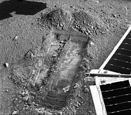 “The robotic arm stops when it detects something hard,” said Phoenix coinvestigator and “digging czar” Ray Arvidson from Washington University in St. Louis. The instrument basically thinks, “This is not good for me,” dumps the soil in a pile and waits for further instructions, he said.