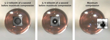 During other trial runs, a capsule would start to compress symmetrically, but then little bumps would emerge on its surface. As the implosion continued, these minor imperfections grew exponentially. Little hills on the capsule’s surface became mountains. Gently sloped troughs morphed into steep valleys. Within billionths of a second what began as a perfectly smooth ball looked more like a medieval knight’s spiky mace.