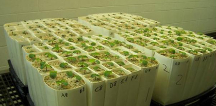 QUIZ TIME An array of jewelweed seedlings in tall pots let researchers
