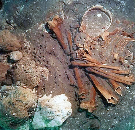 Donoghue and her coworkers were able to extract pieces of DNA from infection-damaged spots on the two Israeli skeletons. Salt water, sand and clay had covered the bodies, providing excellent conditions for bone preservation. Atlit-Yam was located within a coastal marshland before its immersion by the rising ocean.