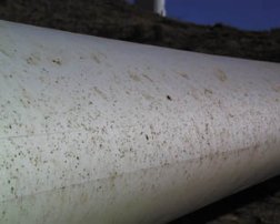 Insect bodies litter a wind-turbine blade’s leading edge. M. D. Burns/Oak Creek Energy Sys.