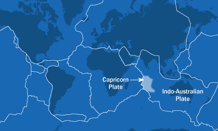 Seven huge plates dominate the plate tectonic scene. At least eight smaller plates show up on most maps, mostly on the margins of oceans where Earth’s crust is thinner and more prone to fracture. But some of these plates, big and small, are in the process of breaking up (see main story), and in a few cases may have already done so. Several scientists argue that the Indo-Australian plate, which is the third largest plate and is in the midst of a drawn-out breakup, has already shed one fragment, a smaller plate dubbed Capricorn, on its southwest edge. Global-positioning satellite data show that the southwest part of the larger plate is not moving in exactly the same direction as the northwest and east. That, some geologists argue, suggests that Capricorn has already broken away.