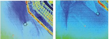 In a nighttime aerial survey of a shallow coastal site near Shiranui, Japan, these scientists used thermal infrared-imaging equipment to scan the sea’s surface over a known discharge zone. In August, the ocean temperature was about 14°C warmer than that of the groundwater seeping from the seafloor. When the seafloor spring lay 1.1 m below the water’s surface, the surface temperature was about 0.4°C cooler than that of nearby waters not situated over discharge zones.