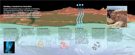 Although most banded iron formations probably accumulated during or after cyanobacteria began suffusing oxygen throughout the seas, some of the formations — albeit ones substantially smaller than those that formed about 2.5 billion years ago —formed millions of years before any dissolved oxygen may have been available.
