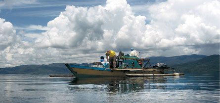 Field measurements reveal that Lake Matano’s surface waters are oxygenated but that all waters below depths of 100 meters, which account for most of the lake’s volume, are anoxic. Because soils in the surrounding watershed are poor, few nutrients make their way into the lake, says Crowe. The few dissolved sulfates that wash in are consumed by chemical reactions that occur within the chemocline, the thin layer of water that separates the oxygenated surface waters from the anoxic depths. So, the researchers note, the oxygen- and sulfate-free depths of the lake, which also happen to be rich in dissolved iron, probably are chemically similar to Earth’s oceans as they existed before the atmosphere became thoroughly oxygenated.