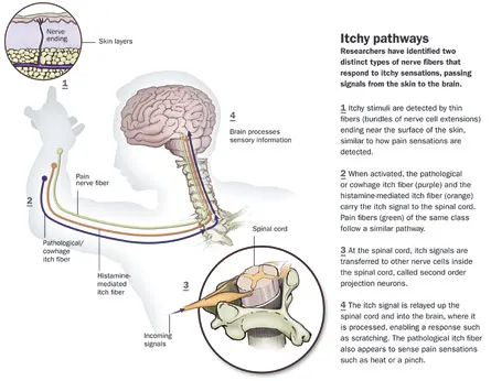 “That’s the hottest topic in the field right now, the idea of different pathways for different itches,” says Earl Carstens, a neurobiologist at the University of California, Davis who studies the details of how these itches travel to the brain. The discovery of these fibers has also led some researchers to rethink the relationship between pain and itch.
