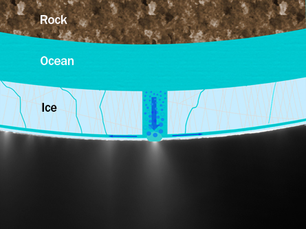 Noncarbonated seawater circulating from the moon’s solid core to the surface would stall rather than seep though cracks in the ice because seawater is denser than the icy carapace. If the seawater were fizzy, however, gas bubbles would form in the liquid, reducing the ocean’s density. Once the seawater became less dense than the ice, the water could rise to within 10 to 15 meters of the frigid surface. That’s close enough to fill chambers in the icy crust with water that feeds the south polar plumes.