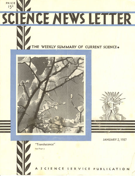 Only a little snow, in the branches of a little tree; but it was exactly the right kind of snow, in exactly the right place, with exactly the right light behind it, seen with the eye of an artist and bound to a photofilm, so that its beauty might endure after its substance had been blown down by the wind or melted by the sun. W.C. West of Chicago, who made the picture on the front cover of this week’s Science News Letter, calls his composition “Translucence.”