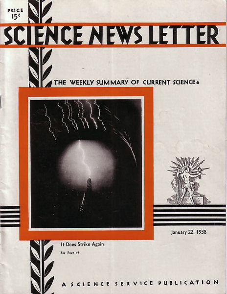 Lightning does strike twice and more than twice in the same place, it is demonstrated by the photograph appearing on the front cover of this week’s Science News Letter. Eleven separate strokes make up what appears to the eye as a single lightning flash.