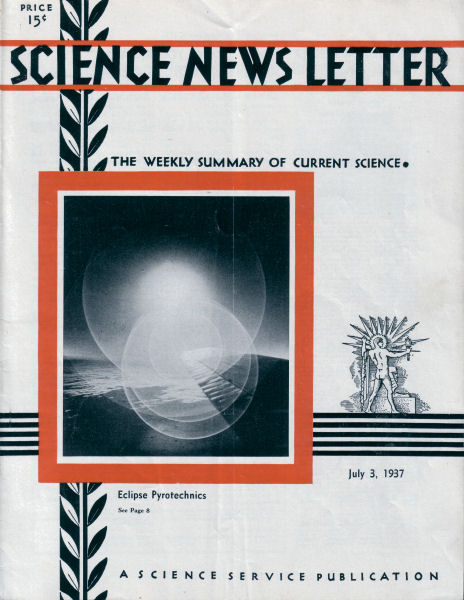 The cover picture of this week’s Science News Letter is from a unique, unretouched photograph, one of a series made by the Hayden Planetarium-Grace Eclipse Expedition. It is one of the occasional astonishing freaks that occur in photography.