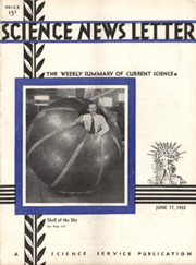The little metal sphere that will be the stratosphere home of two men and scientific instruments for a few hours next month is rapidly being completed (SNL, May 27, ’33, p. 323). It is pictured on the front cover with Dr. Jean F. Piccard emerging at the unfinished vertex of the “orange peel” sections of dowmetal, the magnesium alloy one-third lighter than aluminum.
