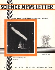 Very slow electrons bent by the action of a magnetized sphere produce “laboratory auroras” in an apparatus devised by Dr. Alexandre Dauvillier, professor at the Ecole Supérieure d’Electricité of Paris. Dr. Dauvillier is a member of the French “polar year” expedition and will spend the coming winter at Scoresby Sound, on the Greenland coast, to obtain final proof of the continuity of the aurora lights right around the polar regions. To this end he will cooperate with the polar expeditions sent by other nations who take part in the “polar year” program.
