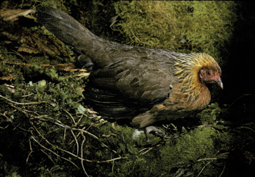 The red junglefowl, native to Southeast Asia, belongs to the same species as the world’s domesticated chicken flocks, explains Richard Wilson of Washington University School of Medicine in St.