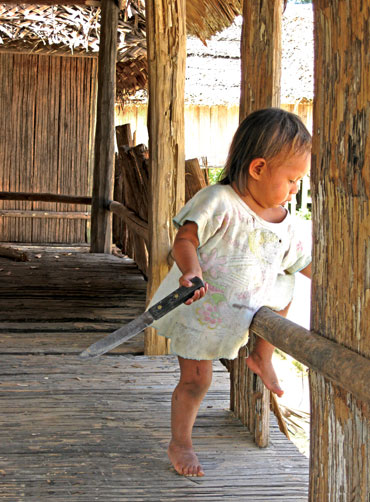 In East Africa, a Hadza infant can grab a knife and suck on it undisturbed, at least until an adult needs to use the tool. On Vanatinai Island in the South Pacific, children freely experiment with knives and pieces of burning wood from campfires.