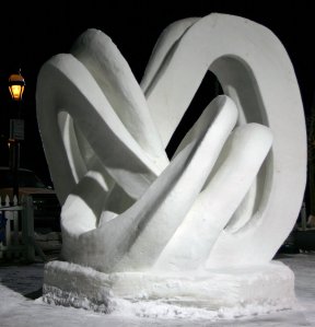 Amazingly, the fragile structure was still standing for the judging and subsequent public viewing. It didn’t win a prize, but it was still a tribute to the power and beauty of mathematics. Interestingly, the winning entry, from a Tennessee team, also featured a mathematical shape—an intricate rendition of the shell of a nautilus (see http://www.gobreckevents.com/isscsnowsculpture.htm).