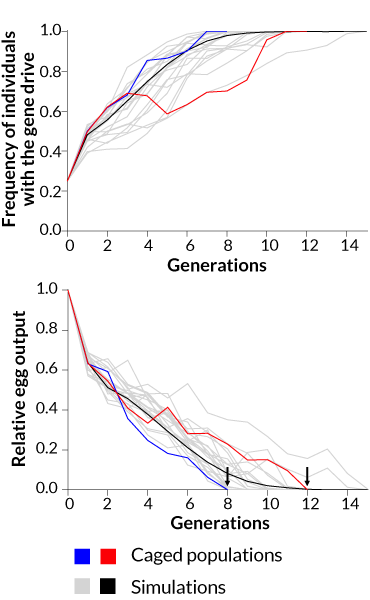 Within seven generations, all of the mosquitoes in one cage carried the gene drive. No eggs were produced in the next generation, and the population died out. In the other cage, it took 11 generations for the gene drive to spread to all of the mosquitoes and crash the population.
