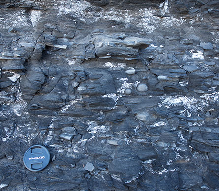 LONG DELAY A lack of nutrients may have delayed the recovery of marine ecosystems following the Permian extinction. On northern Ellesmere Island in the Canadian Arctic, light-colored ocean sediments deposited after the extinction (bottom foreground) contain few nutrients; darker sediments that formed later (middle background along slope) are nutrient rich.