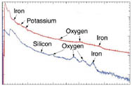 Two gamma-ray spectra recorded by NEAR Shoemaker after it landed on 433 Eros reveal emissions from several elements.