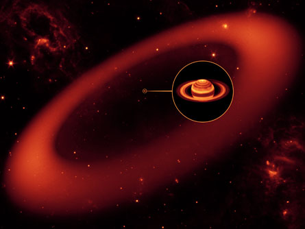 Calculations indicate the tenuous ring is probably even more extensive and is likely to have a diameter reaching 36 million kilometers.
