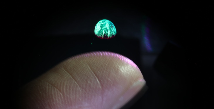 This system works by trapping a cellulose particle that’s mere micrometers across in a beam of nearly invisible laser light. That laser repeatedly moves the particle along a specific path through the air, for example, in the shape of a corkscrew or the outline of a butterfly. At each point on the particle’s path, other lasers illuminate it with red, green or blue light, which the particle scatters in all directions. This creates a single image pixel that can be viewed from all sides.