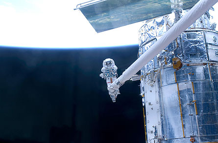 Five space walks had been the last servicing call for the 19-year-old orbiting observatory. The 11-day servicing mission, scheduled to return astronauts to Earth on May 22, almost never happened. NASA canceled the mission early in 2004 after the Columbia shuttle disaster only to reinstate the trip under a new administrator and after public outcry.