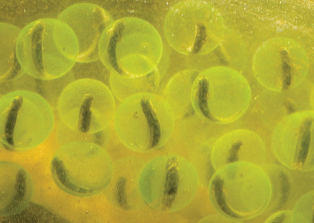 Spotted salamander embryos may rank as the first known vertebrates with full-fledged algal partners living inside their cells. Biologists had known that the embryos link up in some mutually beneficial way with an Oophilia algal species. Embryos develop more quickly and the algae grow better when the species entangle. Now, imaging and genetic analysis have detected algae hitchhiking in salamander egg capsules and actually living inside animal cells when the embryo starts developing, an international research team reports online April 4 in the Proceedings of the National Academy of Sciences. —Susan Milius