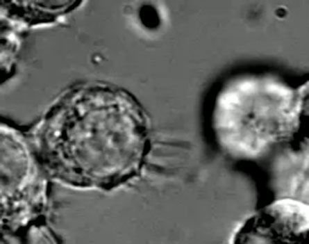 Scientists including Gerdes have seen the nanotubes form. Over the course of four minutes, he and his colleagues watched a stationary rat cell, alive on a microscope dish, extend several spindly protrusions toward another stationary cell, like fingers groping around in the dark. One feeler made contact with the other cell, and a nanotube was formed, while the rest of the feelers retracted into the cell body.