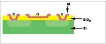 Because of its high capacitance, the gate-silicon dioxide-silicon sandwich can store substantial amounts of electric charge. That charge accumulation controls the flow of electricity that traverses a thin skin of silicon just beneath the oxide.
