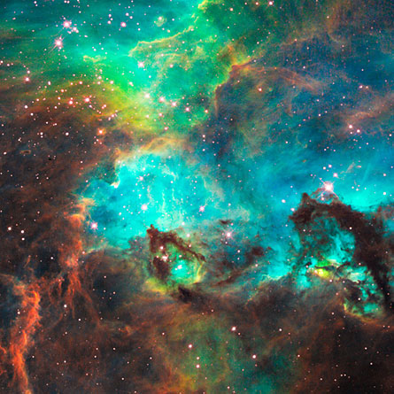 On August 10, one of Hubble’s cameras homed in on a region of gas and dust that surrounds the star cluster NGC 2074, about 170,000 light-years from Earth near the Tarantula Nebula. The nebula is one of the most intense star-forming regions in the local group of galaxies.