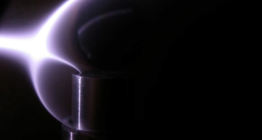 SHIELDS UP A small magnet in a laboratory deflects a jet of particles by forming a thin electric skin. The same principle could be applied to create deflector shields that protect spacecraft from solar radiation.