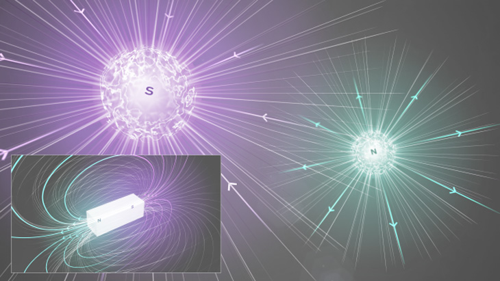 All known magnets have both a north and south pole, as illustrated in the inset image, with lines indicating the direction of the magnetic field. Hypothetical particles called magnetic monopoles, envisioned in the wider illustration, would possess only a north or south pole.