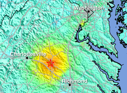 The quake’s epicenter was located in central Virginia about 61 kilometers northwest of Richmond, at a preliminary estimated depth of 6 kilometers. Reports of the quake were posted on the U.S. Geological Survey’s Did You Feel It? website from as far away as Ohio and New York. That’s not unusual for earthquakes on the East Coast, which are commonly felt over a wide area.