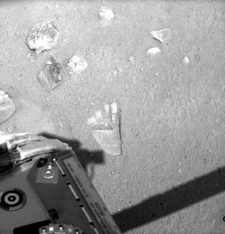 Testing the soil will confirm whether the whitish areas, which the scientists think resemble ice, are indeed patches of frozen water. The light areas could be ice or they could be salts similar to those found by the Viking landers in the 1970s and also by the rover Spirit, which is still collecting data, Arvidson said.