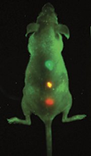 Targeting the different-size quantum dots to various types of cancer cells raises the possibility of “detecting multiple tumor cells by using multiple colors labeled with different [cancer-seeking] antibodies,” he adds. The probes are bright enough to shine through the skin.