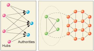 According to Kleinberg and Lawrence, a hub is page that points to many authorities, whereas an authority is a page that is pointed to by many hubs (left).