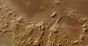 This mountain range is thought to host ice beneath a thin layer of soil, making it a potential target for a human landing.