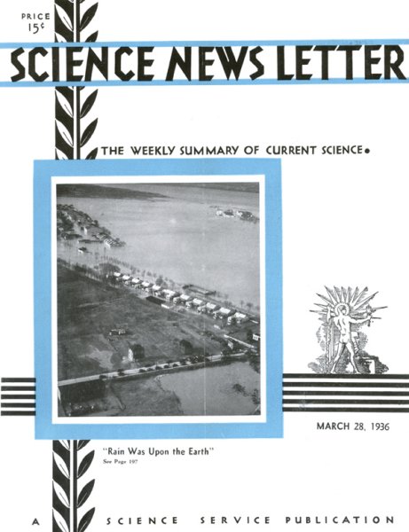 In the emergency, aviation proved its value not only for transportation, but for instantaneous, effective, and accurate estimation of the conditions existing in any locality. One of a series of aerial survey photographs made by the U.S. Army Air Corps appears on the front cover of this week’s Science News Letter. At the upper right it shows the U.S. Naval Air Station at what is usually the bank of the river. At the left is Bolling Field, army air station.