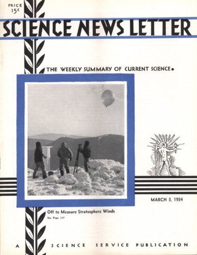 The front cover picture of this week’s Science News Letter strikingly pictures the method of measuring wind velocity high above the top of the mountain. A pilot balloon has just been released and will be followed with the theodolite as long as it can be seen.