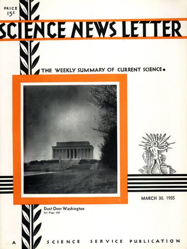 The photograph of the dust storm approaching the Lincoln Memorial in Washington, shown on the front cover, was taken by John Hugh O’Neill, Science Service photographer.
