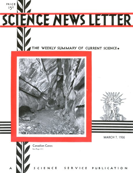 Caves in the limestone strata of the Canadian Rockies just across the boundary from our own Glacier National Park have an architecture all their own, different from the stalactite-pillared development familiar in most limestone caverns. While dripstone is not absent, it is not as abundant as it is elsewhere, and the rugged form of the rock itself is more in evidence, as shown here in the cave popularly known as the Dining Hall. Many geologists believe that earthquakes as well as underground running water had their share in the shaping of these caverns.