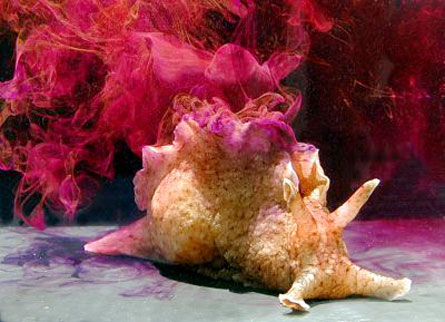 That the ink is more than a blind is in line with previous work. When sprayed with the sea hare’s inky concoction, spiny lobsters fall into a sort of sensory trap that leads them to begin grooming and eating behaviors. But the compounds that spur such behaviors in lobsters dominate the opaline portion of the sea hare’s spray, not the purple ink component.